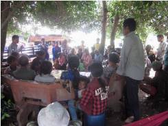 To make farmers understand better and keep their interest, it is decided to have Mr. Pheach Lean who lives in Andoung Neang village since year 2011 as the model farmer for this training in this village which 32 farmers participate.