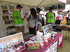 At the booth of GEJ, having the assistance by staff from the CSR Department of Hitachi Construction Machinery Co., Ltd., GEJ staff have coped with so many visitors who listened the explanation of the activities very carefully with questions, and some of them donated their contribution.