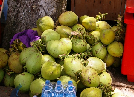 ココナッツの実。カンボジアのみならず暑い気候の国ならどこでも見かけることができる、ポピュラーな果実です。