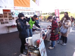 At the booth of GEJ, having the assistance by staff from the CSR Department of Hitachi Construction Machinery Co., Ltd., GEJ staff have coped with so many visitors who listened the explanation of the activities very carefully with questions, and some of them donated their contribution.