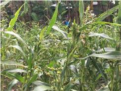 Although there were time difference of sowing between the field of Mr. Phean in Slappan village and the one of Provincial Department of Agriculture (PDA), the thickness and height of the stems of Adlay are bigger and higher, and they are having many fruits at both fields.