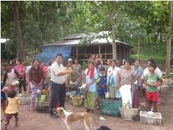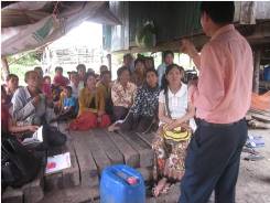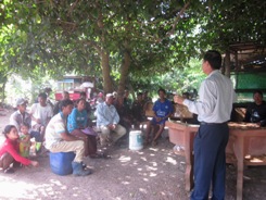 To make farmers understand better and keep their interest, it is decided to have Mr. Pheach Lean who lives in Andoung Neang village since year 2011 as the model farmer for this training in this village which 32 farmers participate.