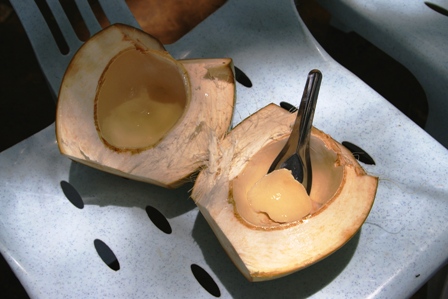 ココナッツの実。カンボジアのみならず暑い気候の国ならどこでも見かけることができる、ポピュラーな果実です。