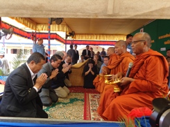 12月22日、カンボジア バッタンバン州のクロックロ−地区で、バッタンバン州チャン・ソファール知事、CMAC(カンボジア地雷対策センター)のラッタナ長官、株式会社日建の雨宮社長、GEJの岡島事務局長列席の元、居住予定者、地域住民や子供たちが多数参加して教員宿舎付き小学校と幹線農道の引き渡し式典が催されました。