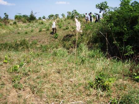 関係者間の調整・手続きのあと、道路建設に係る基礎的な事項の確認を行いました。(ラテライトの供給地、盛り土の採取地、工事用水の水源、労働力のリクルート等) 道路は5m幅を計画していますが、関係者が建設予定の場所を端から端まで踏査し確認しました。